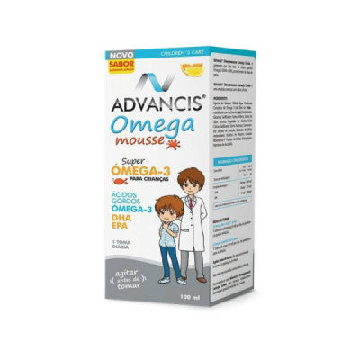 Advancis Omega Mousse Emulsão Laranja e Limão 100ml é um suplemento alimentar sob a forma de emulsão, composto por ácidos gordos essenciais ómega-3, com elevada concentração em ácido docosahexaenóico (DHA).
