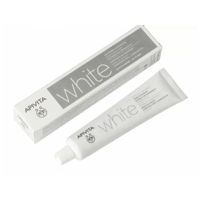 Apivita Pasta de Dentes Branqueadora White 75ml é um cuidado formulado com ingredientes especialmente selecionados para o cuidado da cavidade oral, ideal para toda a família. - Ajuda a restaurar a cor natural dos dentes, respeitando o esmalte dentário, com bicarbonato de sódio e sílica;- Previne a formação da placa bacteriana e protege contra as cáries e a gengivite, com extratos de própolis & chá verde, óleos eessenciais de mástique e limão, flúor (1100ppm), glicerofosfato de cálcio e xilitol.