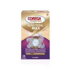 Corega Ação Total Max Pastilhas Efervescentes Limpeza é uma caixa composta por 36 pastilhas de limpeza para portadores de próteses dentárias, a sua fórmula limpa eficazmente sem danificar e ajuda a reduzir a acumulação de bactérias