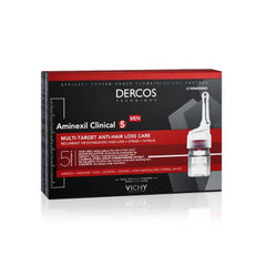 Dercos Aminexil Clinical 5 Homem 6mlx21 Ampolas associa ingredientes ativos para uma eficácia antiqueda, clinicamente comprovada sob controlo dermatológico.