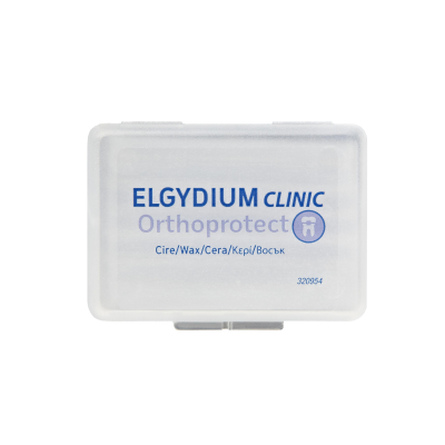 A cera ortodôntica protetora Elgydium Clinic Orthoprotect protege brackets e arames, evitando irritações e auxiliando na recuperação do revestimento da boca.