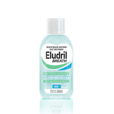 Eludril Breath Colutório é um cuidado de higiene oral complementar, indicado para combater o desenvolvimento de bactérias. Neutraliza até 12h os compostos sulfurados voláteis responsáveis pelo mau hálito, proporcionando um hálito fresco e purificado.