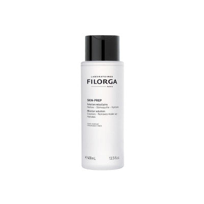 Filorga Skin-Prep Água Micelar 400ml remove a maquilhagem do rosto e dos olhos, promovendo uma limpeza suave e eficaz, respeitando o equilíbrio fisiológico da pele. Indicado para todos os tipos de pele, incluindo pele sensível. Oftalmologicamente testado.