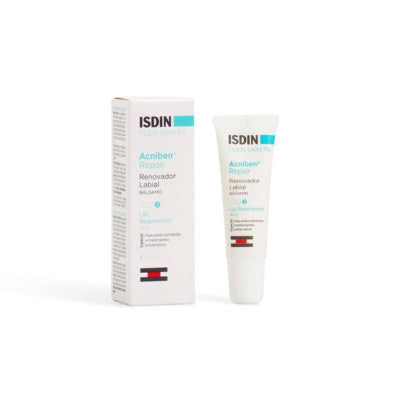ISDIN Acniben Repair Renovador Bálsamo Labial 10ml com agentes hidratantes, reparadores e Calmoactive® atua, graças à sua tecnologia Filmprolong Technology®, hidratando, protegendo e ajudando a aliviar e a reparar os lábios de forma intensa, rápida e prolongada.