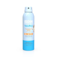 Isdin Fotoprotector Pediatrics Transparent Spray Wet Skin FPS50 é um fotoprotetor corporal em spray transparente, fresco e de absorção imediata, formulado para a pele das crianças a partir dos 3 anos.Benefícios:- Fórmula melhorada com extrato de sempre-viva, que acalma e reforça a função barreira da pele;- Tecnologia Wet Skin, que permite a sua absorção tanto em pele molhada como em pele seca sem deixar resíduo branco e mantendo o fator de proteção;- Muito resistente à água;- Adequado para todos os tipos de pele, incluindo a pele atópica.