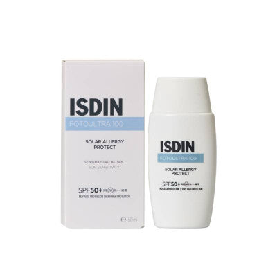 Isdin FotoUltra100 Solar Allergy Protect FPS50+ 50ml é um protetor solar de rosto para pessoas com a pele sensível ao sol, com tendência para intolerância aos raios UV e propensas às alergias solares.