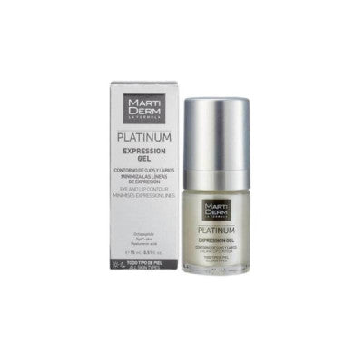Martiderm Platinum Expression Gel anti-idade específico para a zona dos pés de galinha, o contorno dos lábios, o contorno dos olhos e outras linhas de expressão. - Atua a diferentes níveis preenchendo, relaxando e redensificando as rugas;- Octapéptido e Syn®-Ake: reduz as linhas de expressão;- Todos os tipos de pele. Como utilizar: aplicar de manhã e/ou à noite. Realizar uma suave massagem até à sua completa absorção.