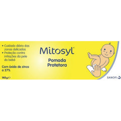 A pomada protetora Mitosyl está indicada para proteger e hidratar a pele sensível dos bebés na mudança da fralda. Apresenta uma fórmula reforçada à base de óxido de zinco, que cria uma barreira antibacteriana que impede o contacto direto de agressores externos – como urina e fezes – com a pele do bebé. Contém, ainda, óleo de fígado de bacalhau, rico em vitamina A e D, para promover a rápida cicatrização da pele. Modo de utilização:Limpar a zona a tratar antes de usar a pomada, e aplicar 1 a 3 vezes por dia. Dica da Tua Farmácia:É aconselhável utilizar depois de cada muda de fralda sobre o rabinho do bebé limpo e seco. Pode usar em qualquer outra zona do corpo (exceto nas mucosas) para proteger e hidratar a pele.