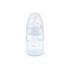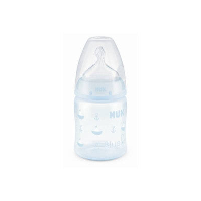 Nuk First Choice Biberão Silicone Blue 0-6M 150ml é perfeito para os primeiros meses de vida, devido à sua aproximação e semelhança com o mamilo da mãe durante a amamentação.