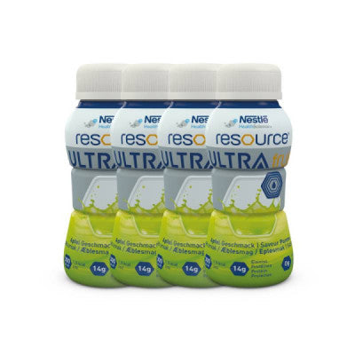 Resource ULTRA Fruit Maçã 4x200ml é um alimento para fins medicinais específicos.- Não é adequado como fonte alimentar única;- Para a gestão nutricional de doentes com desnutrição ou risco de desnutrição como: doente geriátrico, doente oncológico com alterações do paladar e/ou doente hepáticos;- Recomenda-se apenas para maiores de 10 anos.