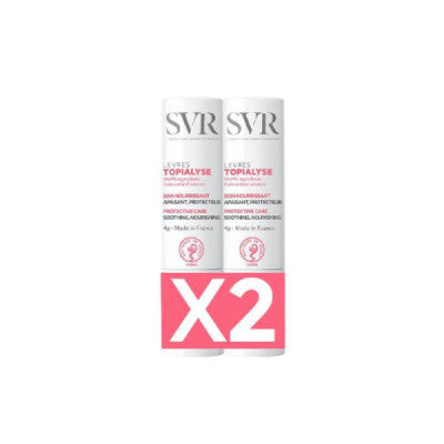 SVR Topialyse Stick Labial Vegetal Duo é um pack promocional composto por duas embalagens de 4g. SVR Topialyse Stick Labial Vegetal é um cuidado reparador e nutritivo, indicado para lábios secos e gretados. - A fórmula contém ómega 3, 6 e 9 e ceramidas que reestruturam e restauram a barreira cutânea;- Cera de abelha e óleo de jojoba, para nutrir;- Vitamina E, com ação antioxidante. Protege os lábios contra as agressões externas;- Textura invisível, com um acabamento não gorduroso. Testado dermatologicamente. Sem parabenos e sem perfume.