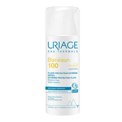 Uriage Bariésun 100 Fluido de Proteção Extrema SPF50+ combina um complexo filtrante com elevada eficácia e duas patentes dermatológicas para conferir proteção extrema à pele intolerante ao sol. Ajuda a prevenir o fotoenvelhecimento e os danos celulares provocados pelos raios UVA, UVB e pela luz azul.