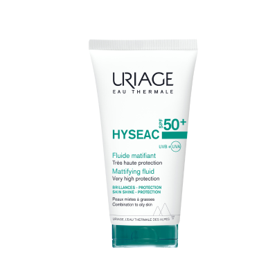 O Fluido Matificante Uriage Hyséac SPF50+ hidrata, matifica e protege a pele mista a oleosa contra os raios UVA, UVB e radicais livres.