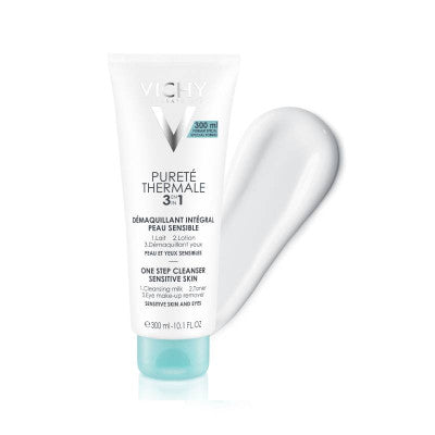 Vichy Pureté Thermale Desmaquilhante Integral 3 em 1 300ml universal é um leite, loção e desmaquilhante para os olhos, formulado para pele sensível.